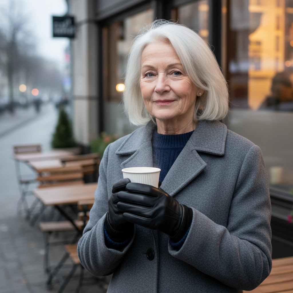 The water-repellent surface makes them a reliable companion in snow, rain, or simply on your way to work. Their classic design suits both a cosy winter stroll and a festive occasion. I wanted to create gloves that are practical, look elegant, and bring joy for many years.